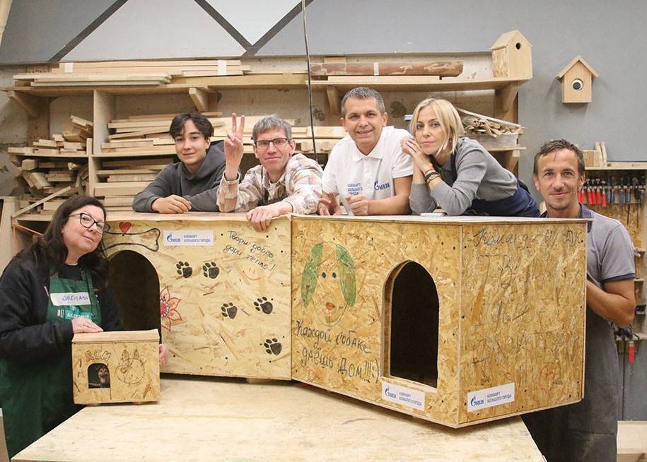 «Когда я задумывал этот проект, вообще планировал построить одну, две будки. А сейчас у нас уже больше чем 850 будок за пять мы собрали и подарили в приюты в разные регионы России. Первую будку мы собирали 8,5 часов. А когда собрали, поняли, что она не входит в дверь. Пришлось частично разбирать, потом снова собирать. Но подарили приюту нашу первую будку. К тех пор мы научились все делать быстро. Даже проводим мастер-классы по сбору будок, за час-два собираем новые дома для собак», - рассказывается основатель волонтерского движения «Погуляй собаку» Дмитрий Михайлов.