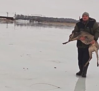 Животные кричали, при любой попытке встать, их копыта скользили, а ноги разъезжались в шпагате. В таких акробатических позах их и увидели наши герои. Мужчины не стали долго думать и начали переносить косуль туда, где начинался снежный покров и камыши.