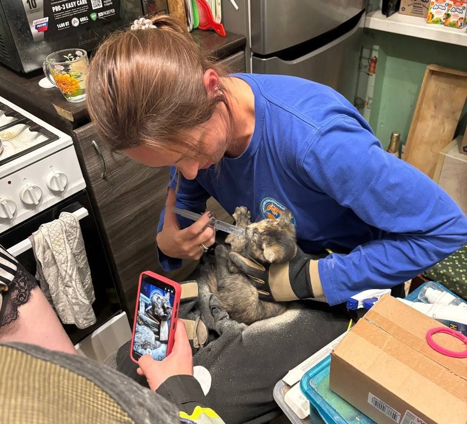 Одна из громких историй на счету добровольцев – спасение кошки Афины. Кошка несколько дней провела в стенах многоквартирного дома и постоянно кричала. Сначала мяуканье услышали жильцы и вызвали спасателей. Дело было ближе к ночи. Прибывший экипаж обследовал все, что было возможно в это позднее время. Получили доступ в несколько квартир и чердак.