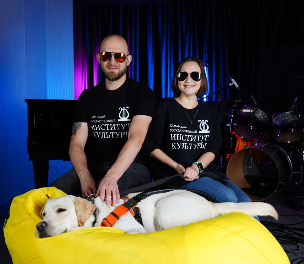 Семья студентов Анны Казаевой и Валентина Бычкова белоснежного лабрадора ждала два года. Для них он стал не только помощником на улице, но и самым настоящим членом семьи. Валентин ослеп в 2015 году из-за травмы, а Анна спустя два года из-за сахарного диабета. Музыкой занялись вместе и поступили в институт культуры. Анна учится вокалу, Валентин - будущий саксофонист.
