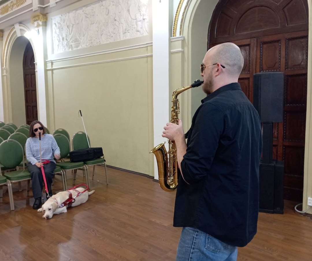 По понятным причинам семье Анны и Валентина потребовалось получать разрешение в институте, чтобы собака-проводник посещала с ними все занятия. И тут креативный подход проявил ректор. Снежку было решено просто выдать студенческий билет. Пусть тоже учится музыке и постигает высокое искусство.