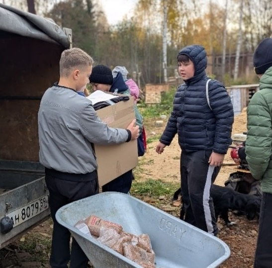 Школе удалось собрать только для собак более 250 килограммов сухого и влажного корма, разных круп, собачьих лакомств. Привезли ребята также амуницию, перчатки, ошейники, поводки, расчески и даже текстиль для собак.