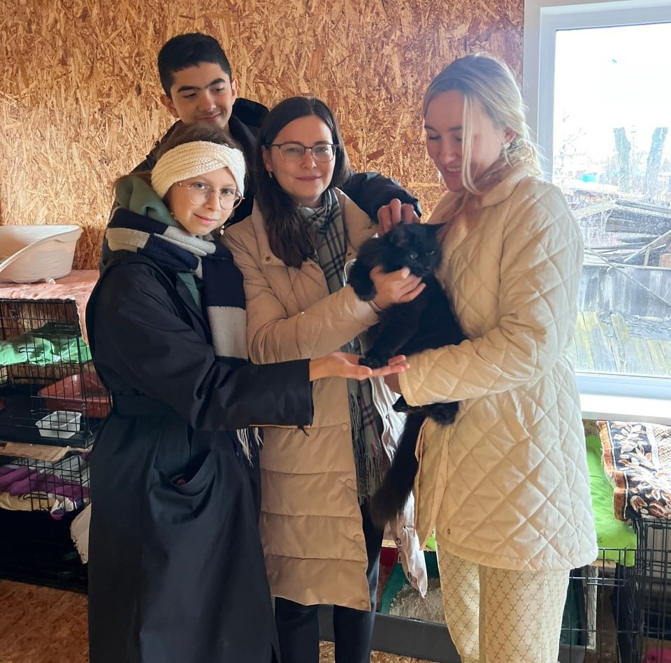 Получив порцию добра от мохнатых, ребята отправились к другим хвостатым – в приют для кошек, где содержатся 65 питомцев. Семьи учеников и сотрудники «Экошколы» передали усатым более 70-ти килограммов сухого корма и почти 400 пакетиков влажного корма, пелёнки, игрушки, миски, расчески, лотки и наполнитель.
