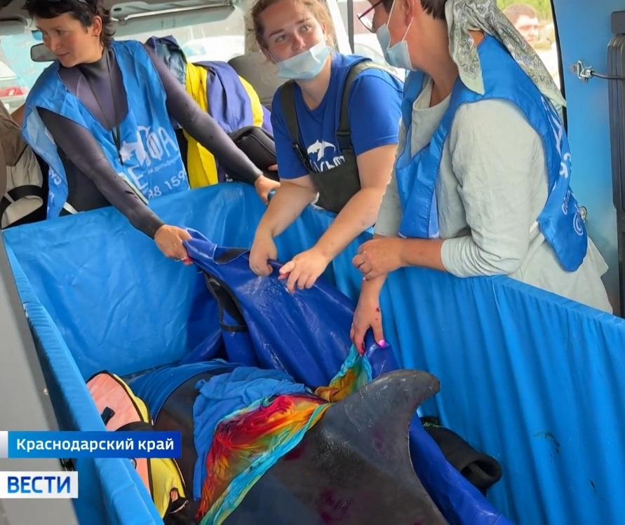 «Нам с ним нужно оставаться, реабилитировать, оказывать дальнейшую помощь и поддержку. Если мы увидим, что он стабилен, что стресс на него не повлиял, то мы отвезем дельфина на Чёрное море в Анапу», - говорит директор центра «Дельфа» Татьяна Белей.