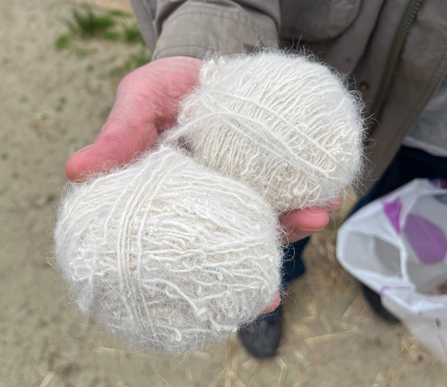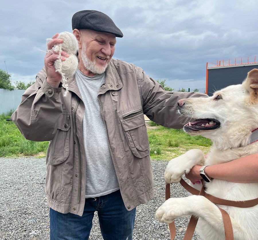 But before deciding to give all the wool for recycling, the volunteers searched for a very long time in Surgut for a master who would take up spinning a thread from dog hair. He became a new volunteer of the shelter, Sergey Vasilyevich, who makes yarn for a small fee.