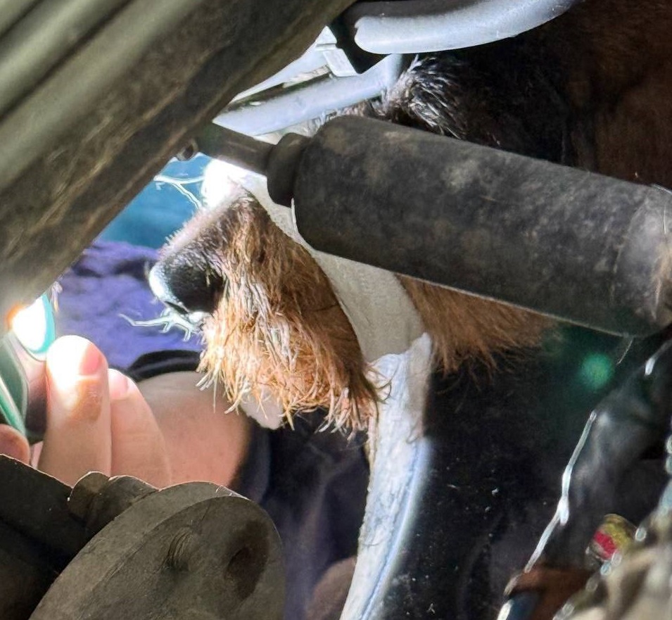 А историю о «дружбе» неизвестной кошки и пса по кличке Иви в «СпасРезерве» точно не забудут. В июне добровольцы приехали на очень необычный вызов. Собака запуталась в двигателе припаркованного автомобиля. Оказалось, что пес погнался за кошкой, которая юркнула под машину. Он на полной скорости ввинтился следом и застрял, начал ёрзать в пространстве под двигателем, в результате шерсть накрутилась на штырьки и трубки. Пришлось поднимать машину на домкратах.