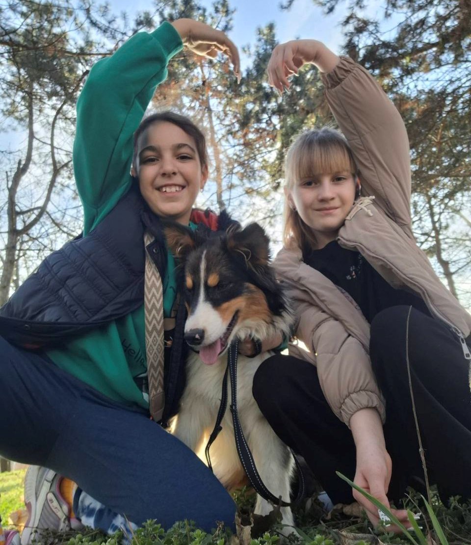 Ещё одна трогательная история - спасение австралийской овчарки Маффина. Его девочка нашла возле магазина, когда шла покупать сосиски для дворовых котов. Породистого щенка просто выбросили на улицу. Ими принесла малыша домой. Маффин так и остался жить у своей спасительницы. Причем, Имтиталь воспитанием и дрессурой пса занимается лично.